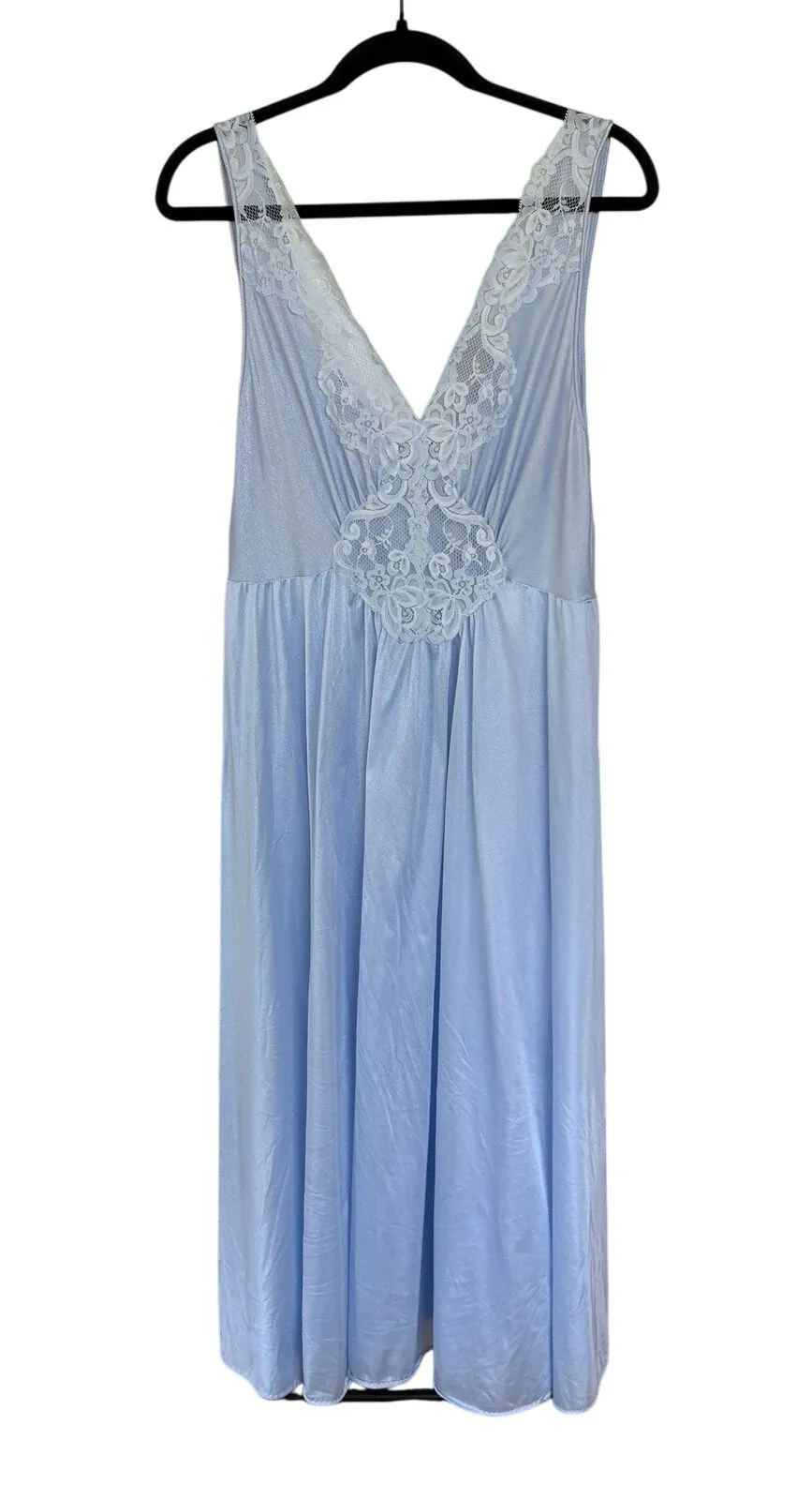 Vintage Sky Baby Blue Cinderella Silky Lace Maxi Slip Dress Miss Elaine Absolutely stunning long li... Show more