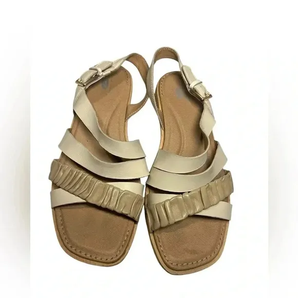 Please see the pictures for any details and signs of wear. From a smoke-FREE, dog-friendly home. I always try to ship within 24 hours. 📬 Please feel free to ask any questions! A strappy sandal with happy vibes and iconic styling, the Magnolia offers a fun strap design, an adjustable buckle, and a cushioned insole that keeps feet feeling good all day. From Dr. Scholl's. Slip-on style, overlapping straps, heel strap with adjustable buckle, ruched strap detail, squared toe Approximately 0.75" heel Leather upper; man-made lining; man-made outsole Imported