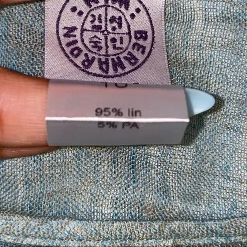 Kim Bernardin Paris linen blend lagenlook top with short top slit sleeves and a drop hem. Has a meta... Show more