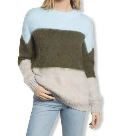 BP. Nordstrom women’s color block pullover Fuzzy Knit sweater OVERSIZE BRUSHED PULLOVER IN BLUE TRIX... Show more