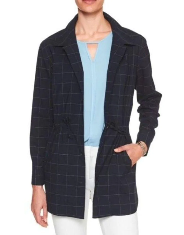 Banana Republic Womens Windowpane Drawstring Shirt Jacket Navy Blue White Medium Brand: Banana Repu... Show more