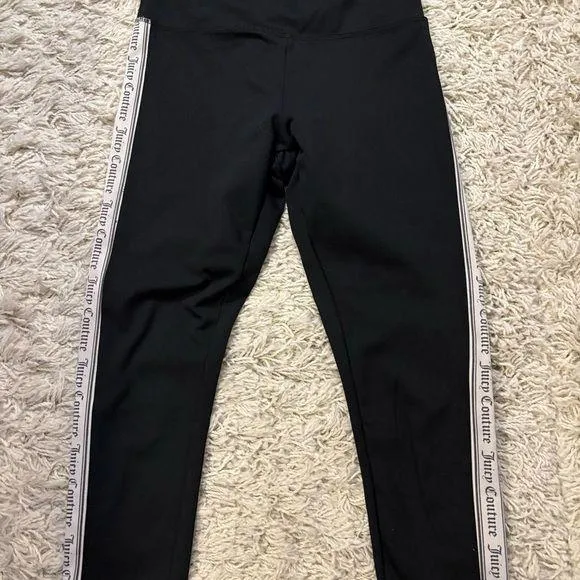 Juicy Couture's black sport capri leggings, featuring sleek athletic stripes with logo along the sid... Show more