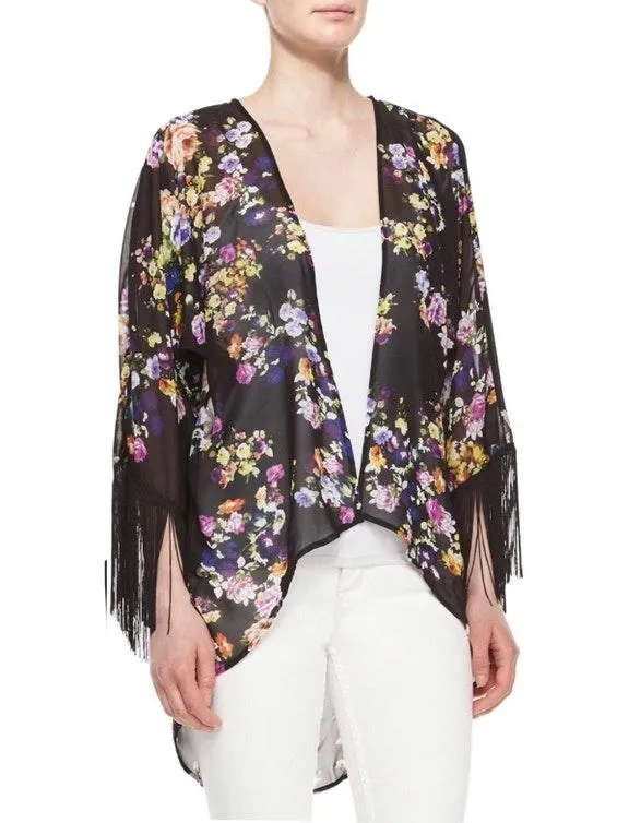 Romeo & Juliet Couture Floral-Print Fringed-Cuff Kimono Romeo & Juliet Couture floral-print georgett... Show more