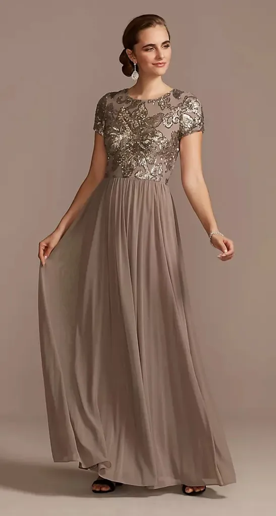 BETSY AND ADAM A-Line Dress with Floral Sequin Bodice in taupe size 14W Tan - $90 - From Reagan