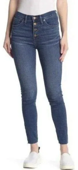 Madewell 10" High Rise Skinny Crop Jeans Button Fly Raw Hem Med Wash Women's Size 25 Exposed Button... Show more