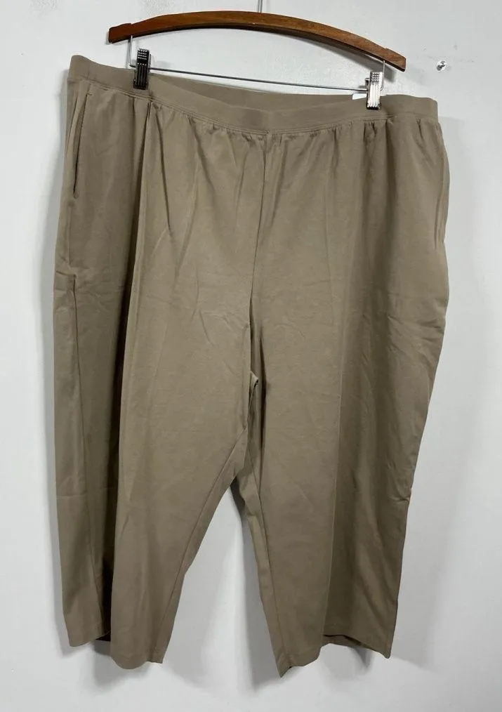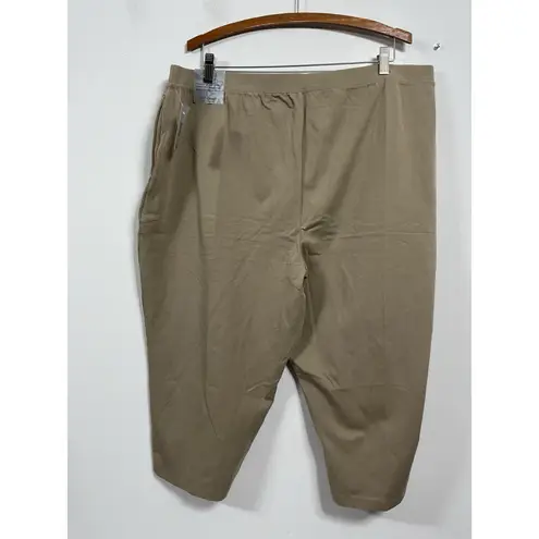 The Women's Catherines Suprema Collection Relaxed Fit Petite Pullon Capri Pants in 2XWP (22/24WP) size are designed for petite women with a waist size of 42 inches and an inseam of 20 inches. Made from a blend of spandex and cotton, these tan capri pants feature a 13 inch high rise and are perfect for a comfortable and stylish look. With a pull-on style and elastic waistband, these pants are easy to wear and provide a flattering fit for women sizes 22/24WP. Measurements are appropriate. These pants are NWT!