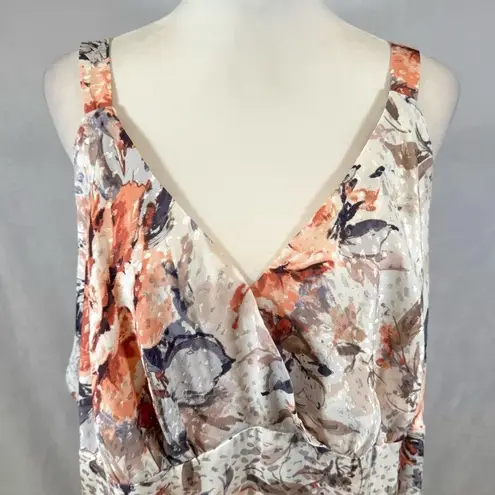 Beautiful dress patterned with satin and printed with blush floral. Surplice vneck top. Small front... Show more
