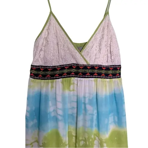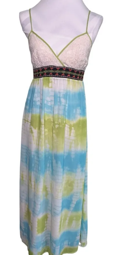 Size Small Excellent preowned condition Elegant lace dress by Flying Tomato. Features green accents... Show more