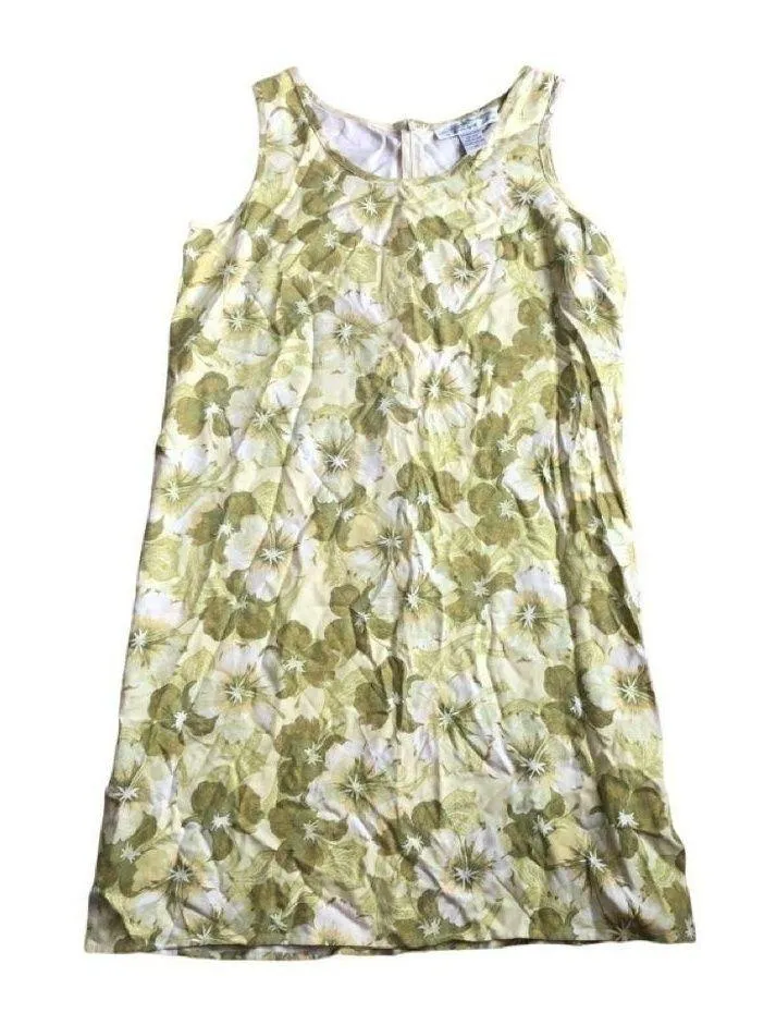 VTG Pineapple Moon 100% SILk Jane Hawaiian Dress A-Line Sleeveless M. Shades of green. Lightweight.... Show more