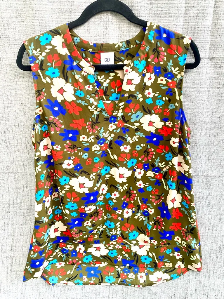 cabi Colorful Floral Print Chiffon Sleeveless Top, Size M Excellent preloved condition Olive green w... Show more