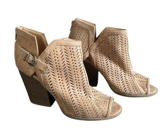 These shoes are Altar’d State heeled booties in a light tan/nude faux suede material in great pre-ow... Show more