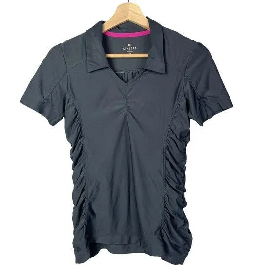 Athleta Gray Ruched Side Birdie Short Sleeve Golf Polo Excellent used condition, no visible signs... Show more