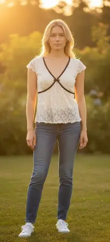 Thirty Thirty La Romantic Top Ivory Suede Black Trim Cottagecore Croquette XS White - $20 - From Kara