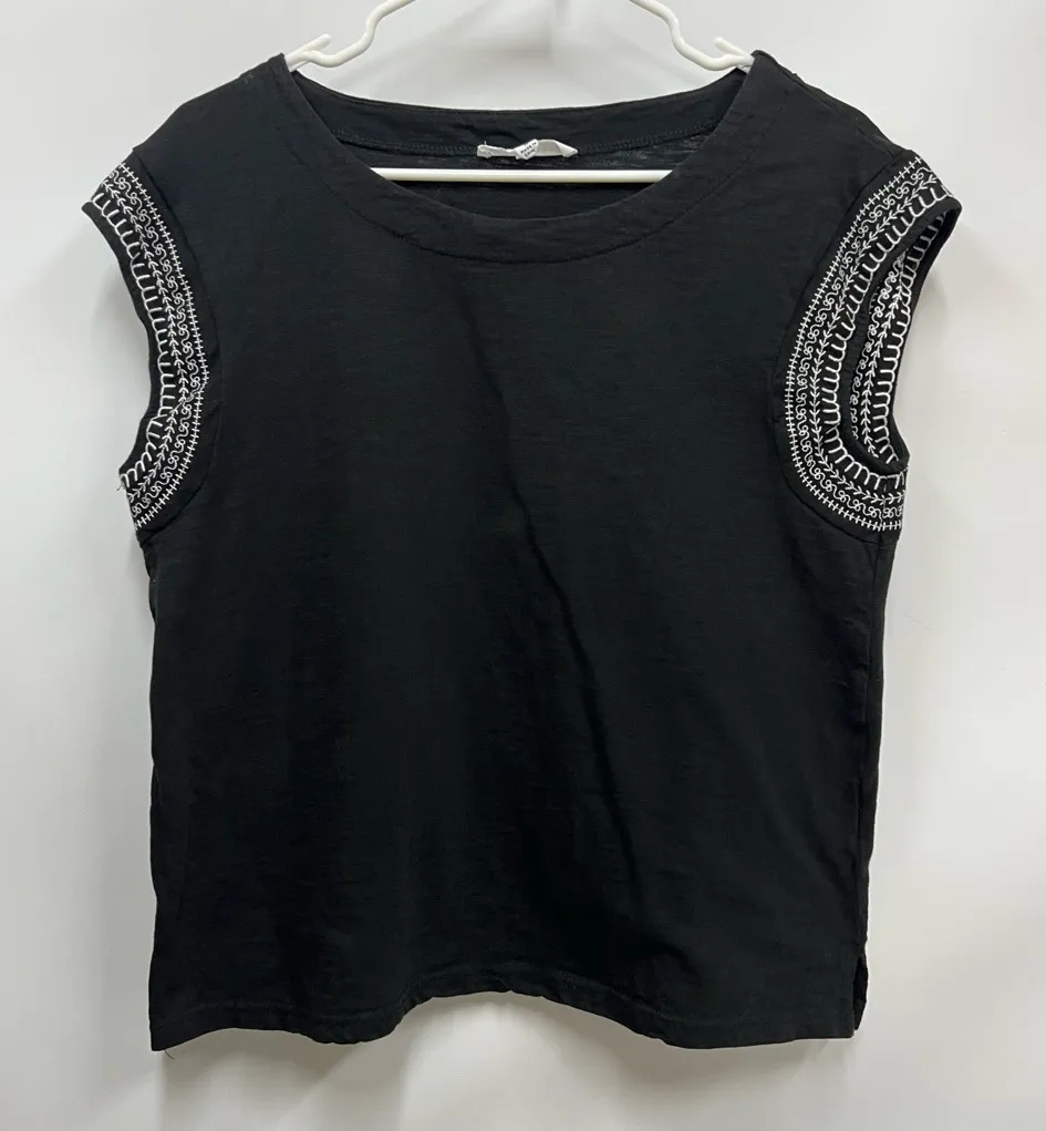 Jane and Delancey M Black Sleeveless Top with white embroidery 100% cotton Size M - $22 - From Maricella