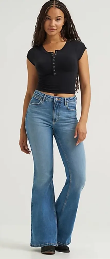 Elegant Wrangler flare jeans with a timeless blue hue size 28x34. Perfect for versatile styling. Dur... Show more