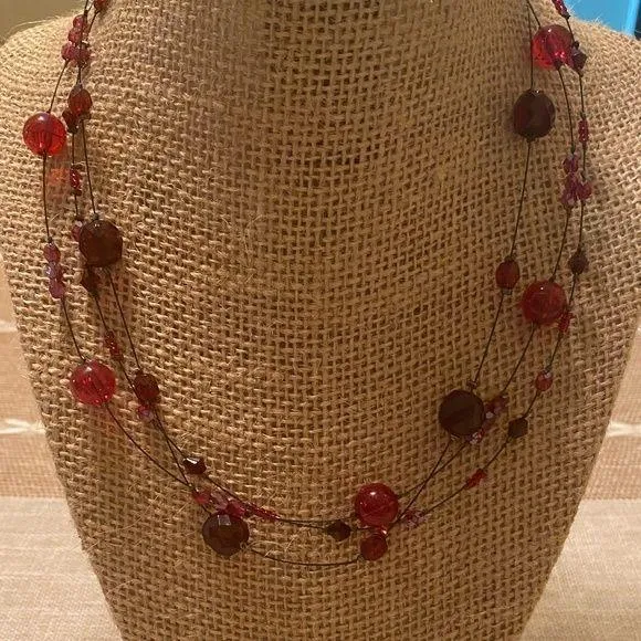 NY&CO NY & Co Multi Strand Illusion Choker Necklace Red Acrylic Beads Gunmetal - $12 - From Christy