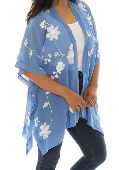 GS10_021724_1 In very good used condition Fame Blue Sheer Boho Embroidered Floral Open Kimono Cardig... Show more