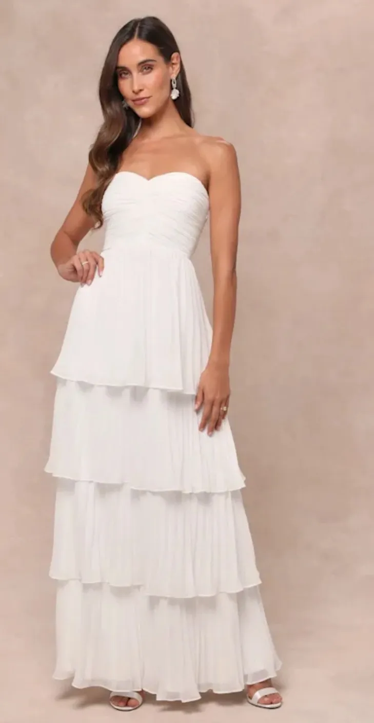 Lulus Seriously Sensational White Strapless Tiered Maxi Dress in White Size L - $60 (44% Off Retail) - From Jess