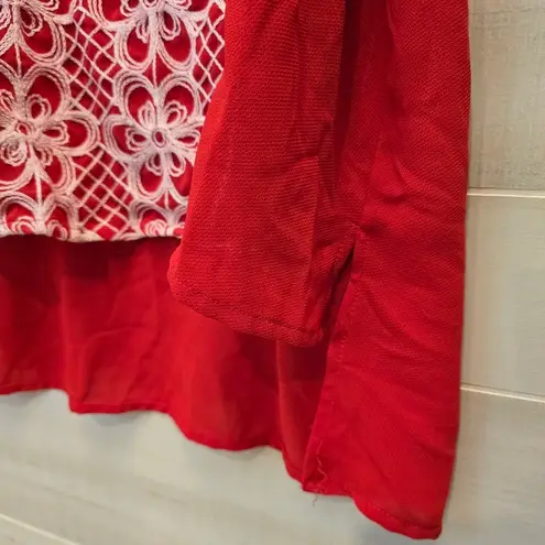 Torrid size 1 equal to 1X 24" pit to pit 26" length in front 32" length in back Red and white sl... Show more