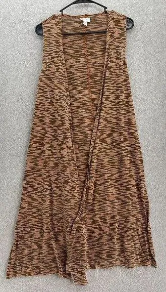 Lularoe Women's Long Open Front Sleeveless Brown Marled Cardigan Size Small 100% Acrylic