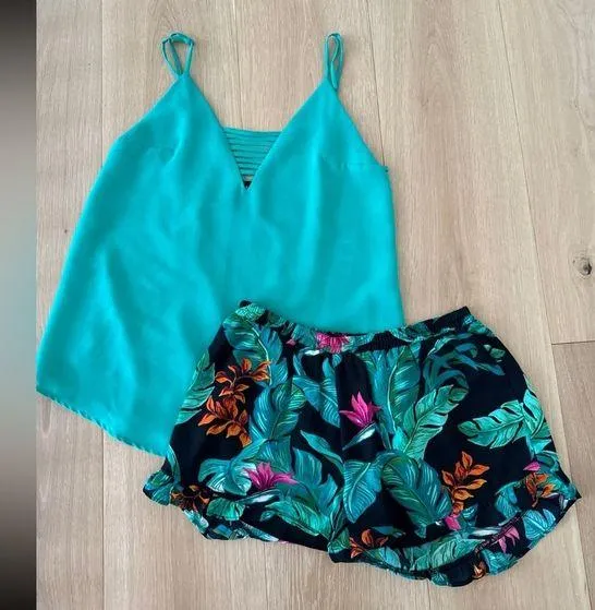 Size small Fabrik green tank top and matching size small Fabrik tropical print shorts. Both in perfe... Show more