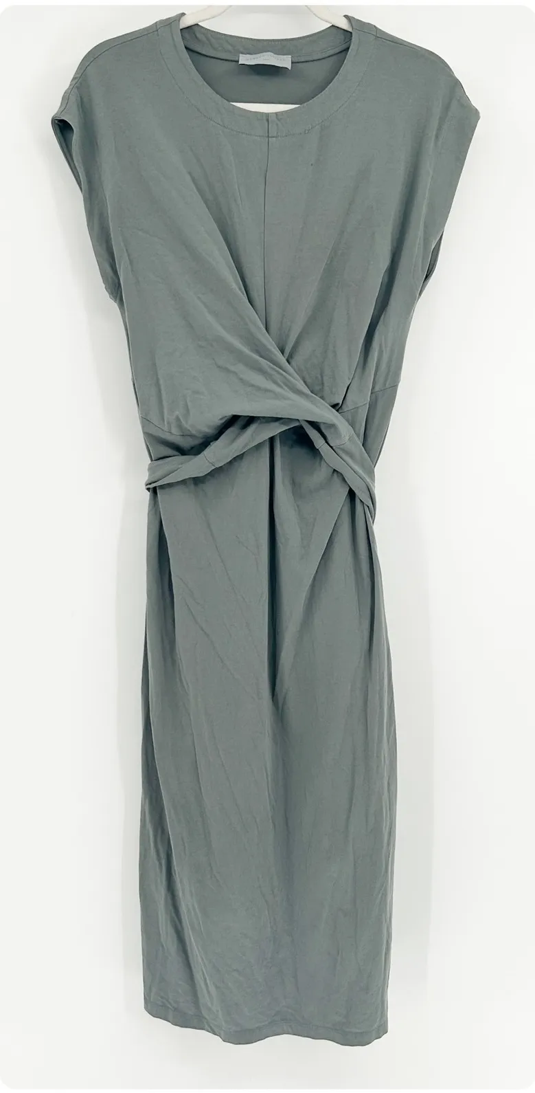 arge in Sage Gray Good preowned condition, no visible flaws. Style: T-Shirt Dress Dress Length: Midi Department: Women Sleeve Length: Sleeveless Pattern: Solid Occasion: Casual Material: Cotton Blend, Cotton, Spandex Fabric Type: Knit Neckline: Round Neck Season: Summer, Spring Sleeve Type: Cap Sleeve Closure: Tie Keywords: Modern Citizen, Midi Dress, Twist Front, Knot Dress, Organic Cotton, Casual Dress, Comfortable Dress, Summer Dress, Everyday Dress, Sleeveless Dress, Women's Fashion, Contemporary Style, Minimalist Fashion, Sustainable Fashion, Quiet Luxury Approximate measurements while laying flat: Pit to Pit: 18" Waist: 17.5" Length: 46" All Items Come From A Smoke Free Home ! Reasonable Offers Welcome!