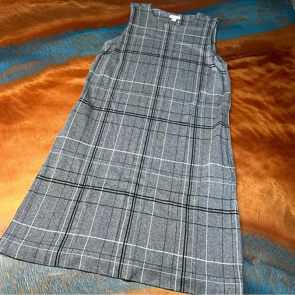 J. Jill Ponte Gray Plaid Sheath dress Womens size medium Sleeveless with pockets Offers welcome!