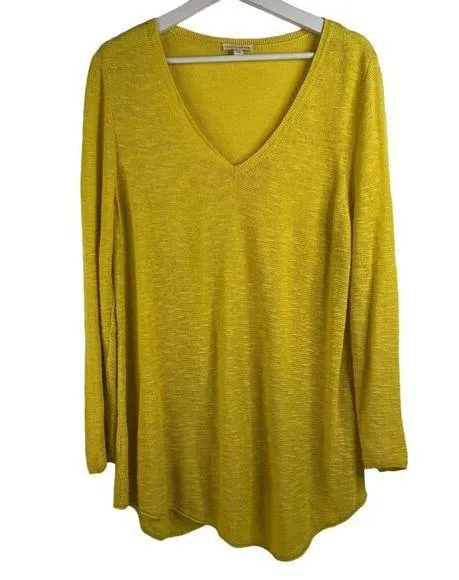 Eileen Fisher Size L Sweater Organic Linen Blend Yellow V-Neck Asymmetrical Hem Preowned Condition,... Show more