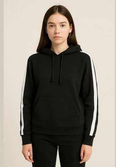 Divided by H&M black hooded sweatshirt. Size M (Medium). Features long sleeves with a single white s... Show more