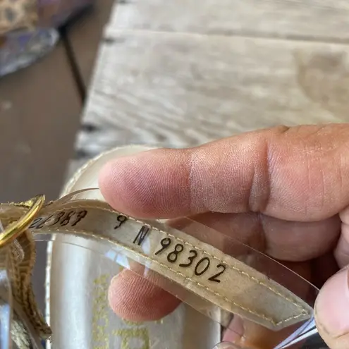 Very retro. Never worn. Vintage California Magdesians Gray & Clear Snake Leather Sling Backs size... Show more