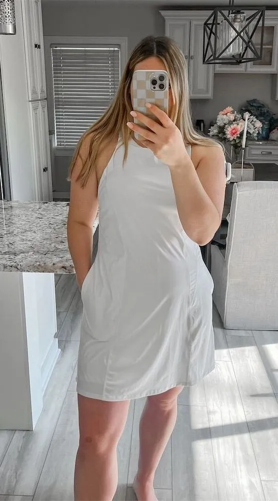 - All In Motion - Size L - Regular Size Type - Racerback Style - Exercise Style - Short Dress Length - White Color - Women's Department - Casual Occasion - Lightweight Material - Breathable Fabric - Built-in Shelf Bra - Adjustable Straps - Cross-Back Design - Machine Washable - Pre-owned Condition - Suitable for casual outings, gym sessions, and everyday wear Bundle with two or more items to save