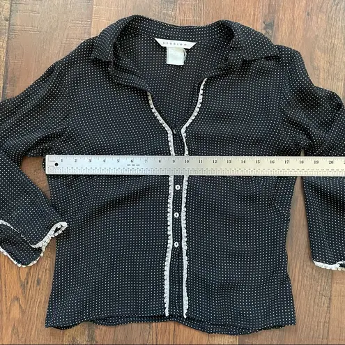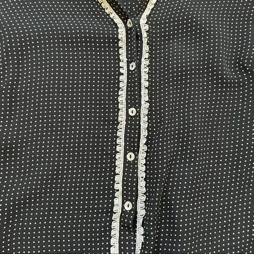 STUDIO M by MAX STUDIO black silk top with tan polka dots and ecru lace detailing. Freshly laundered... Show more