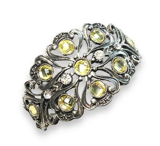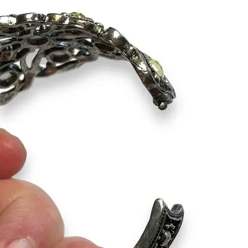 Jeweled Hinged Rhinestone Cuff Bracelet Silver Green Condition: EUC Description: Hinged cuff bracele... Show more