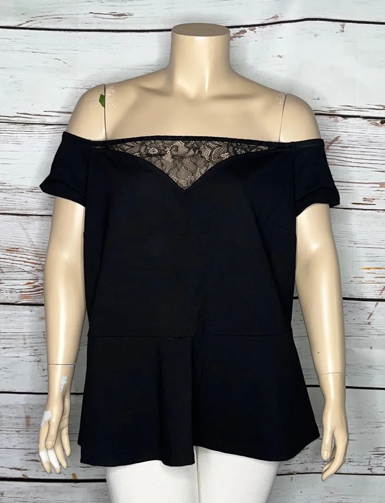 Lane Bryant Size 26/28 Black - Floral Lace Off the Shoulder Ponte Knit Top. Peplum Hemline. Short Sl... Show more