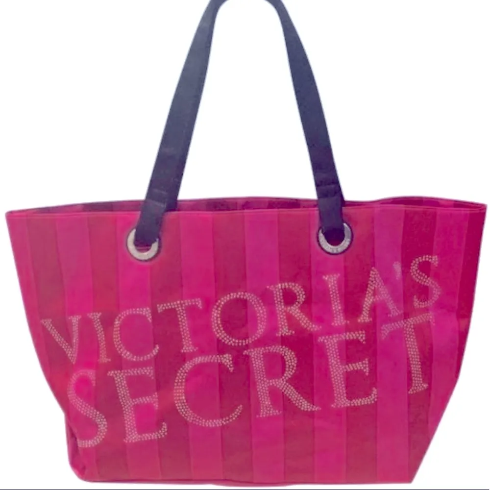 Victoria’s Secret LIMITED EDITION Large Striped Pink & Red Satin Weekender Tote Bag Rhinestone Stud... Show more