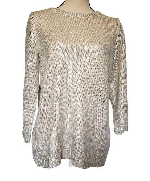 Cream and metallic Jones New York Signature pullover crew neck 3/4 sleeve sweater Stockinette knit I... Show more