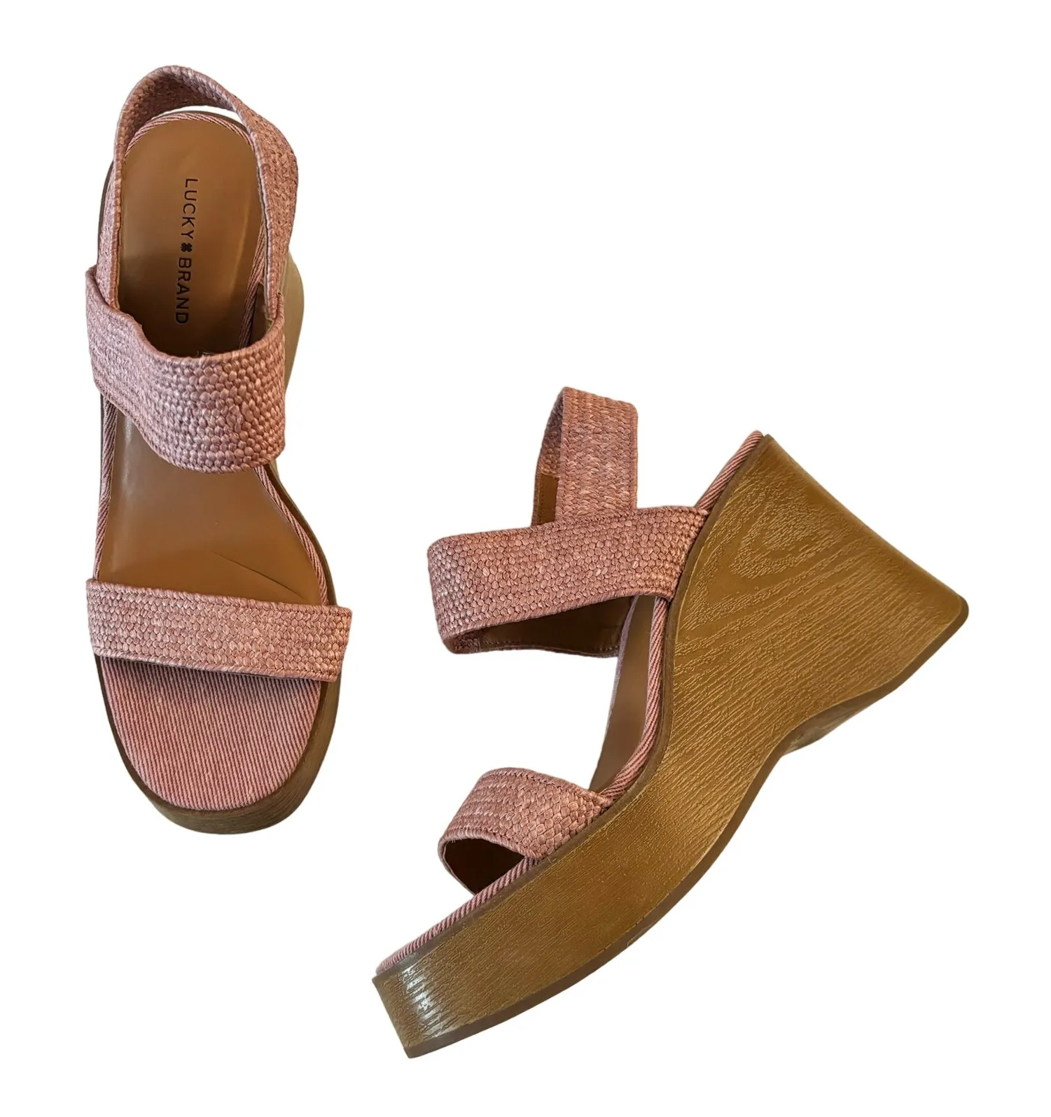 Features: Lucky Brand Delukah Pink Slingback Weave Straps Platform Wedge Sandals; Heel height is app... Show more