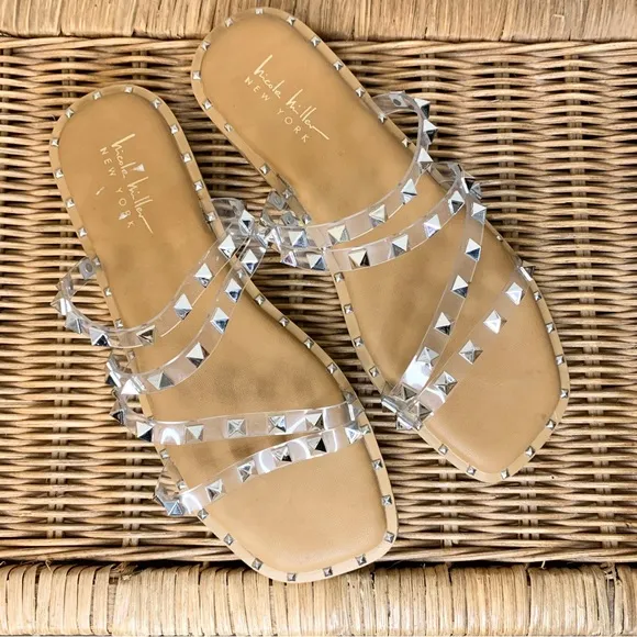 Nicole Miller New York Clear Stud Strappy Sandal Size 8.5 Coralinne Sandal Clear straps with silver... Show more