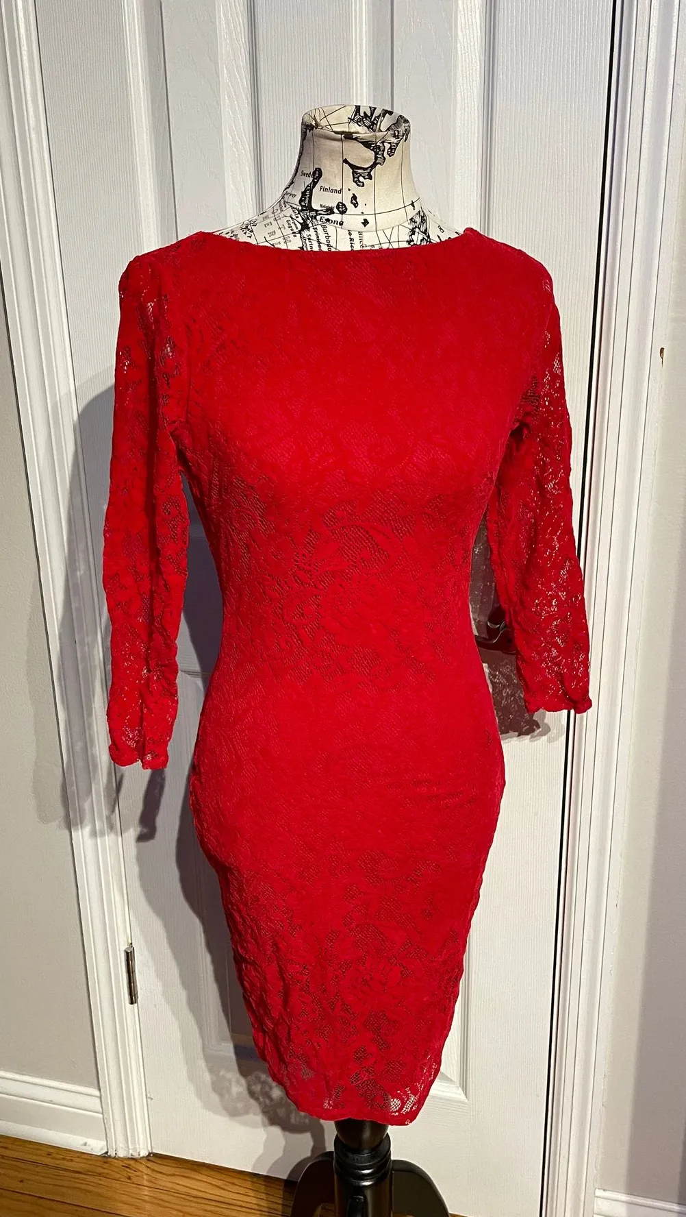 Moda International Vintage Lace Colorful Backless Sheath Shift Dress Long Sleeve Open Back Women's S Red Party Step into the spotlight with this vibrant Moda International dress, a perfect blend of style and comfort. Crafted for the fashion-forward woman, this red sheath dress boasts a body-conscious silhouette that's sure to turn heads. The short length adds a playful touch, while the long sleeves provide an elegant contrast. Made from a blend of nylon, elastane, and polyester, this dress offers a snug yet stretchy fit, ensuring you look and feel fabulous at any event. Embrace your inner diva and make a bold statement in this eye-catching ensemble. Purchased long time ago on Victoria Secret All sales are final