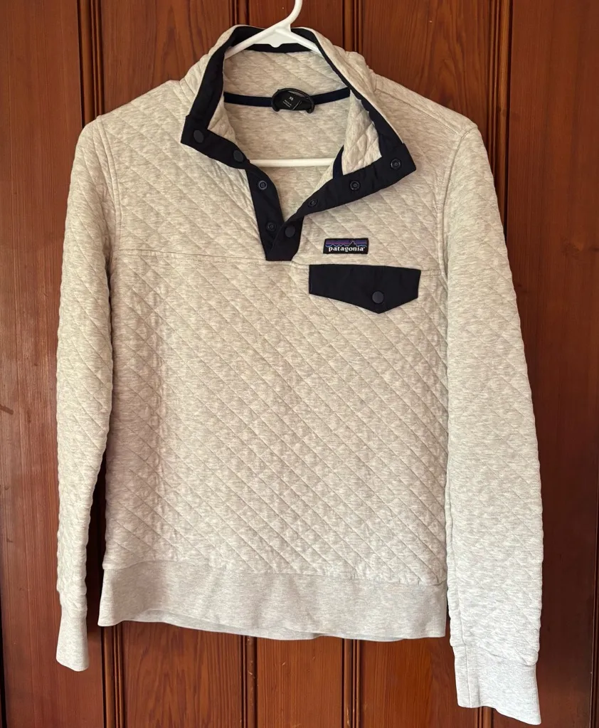Patagonia Women's Organic Cotton Quilt Snap-T Pullover Birch White and Navy Blue Size Extra Small