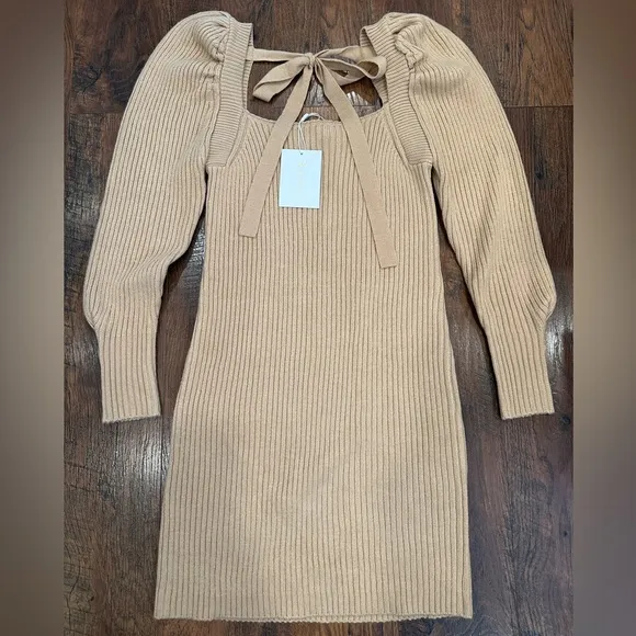 WAYF Tan Ribbed Knit Dress with Bow Detail Size XS - $42 New With Tags - From Rachael