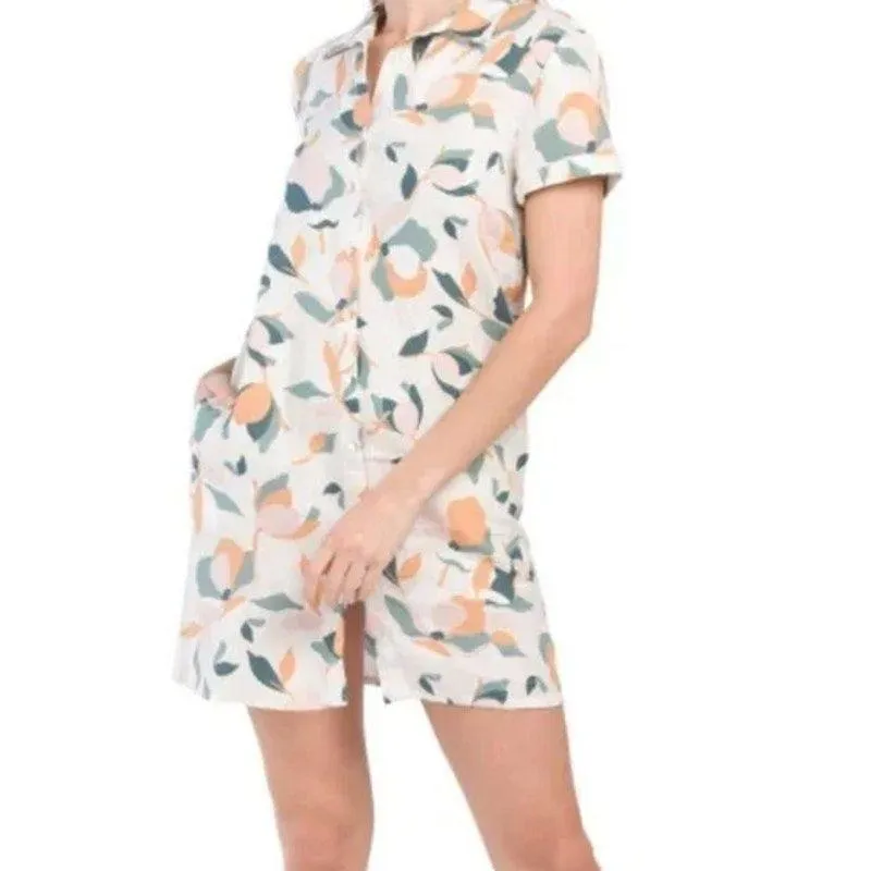 Rachel Zoe Linen Short Sleeve Button Up Tee Shirt Dress Multicolor Size Small Retails for $110 Excel... Show more