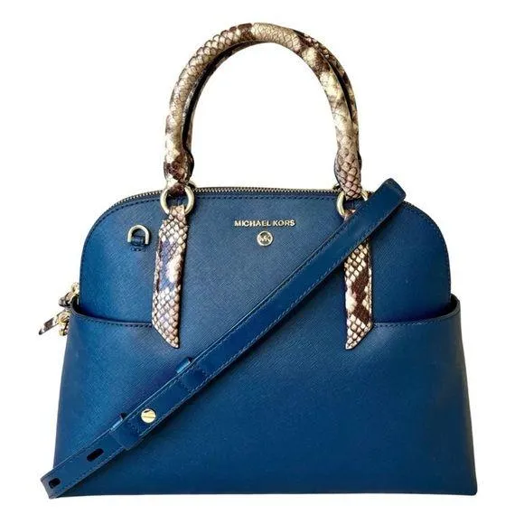 . Absolutely stunning navy blue MK dome handbag with gorgeous embossed snakeskin rolled leather hand... Show more