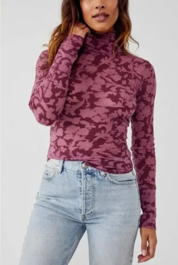 Intimately Free People You And I Long Sleeve Top Color: Acai (mauvey pink floral print) Cotton blen... Show more