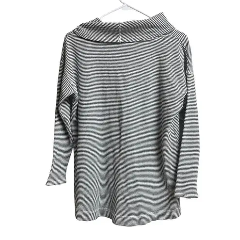 J.Jill Waffle Knit Cowl Neck Top Pullover 3/4 sleeves Medium Petite Blue and gray waffle knit 75% c... Show more