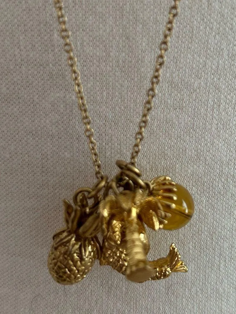 Whimsical J. Crew gold tone metal with a cluster of summer themed charms. Palm tree, fish, coral, pi... Show more