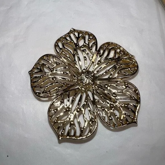 Gerry Vintage Signed Large Ornate Flower Brooch Gold Tone - $20 - From A Little