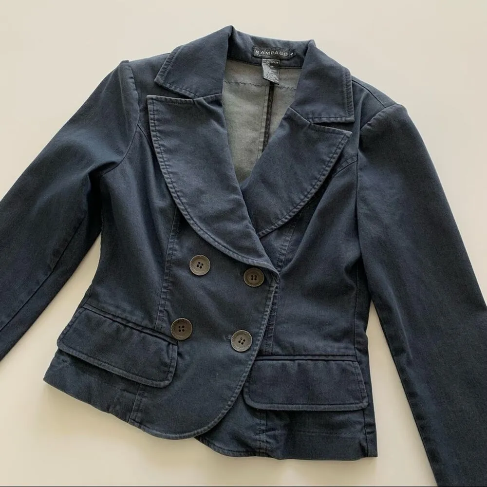 Features: Via Penny Lane Reworked Apparel | Britney Spears Graphic Denim Blazer Jacket; One of a kind nostalgic pieces with a modern twist. Rampage blue denim blazer jacket, Britney Spears “Piece of Me” Las Vegas Residency graphic sewn onto the back. Size: small Condition: preloved jacket gifts for her, casual, chic, relaxed, stylish, trendy, feminine, bohemian, Y2K, 90s, pop