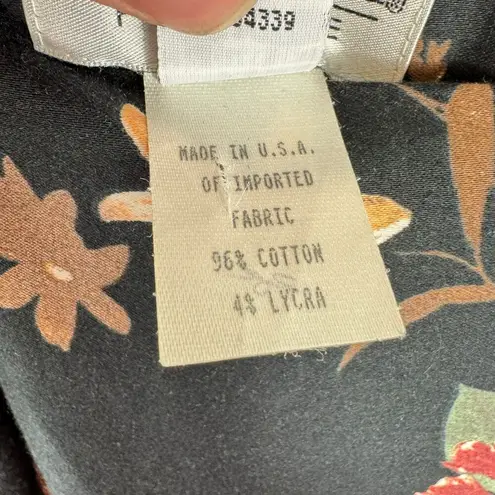 Excellent preowned condition. Vintage black sleeveless square neck sheath dress with colorful floral... Show more