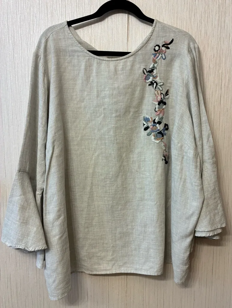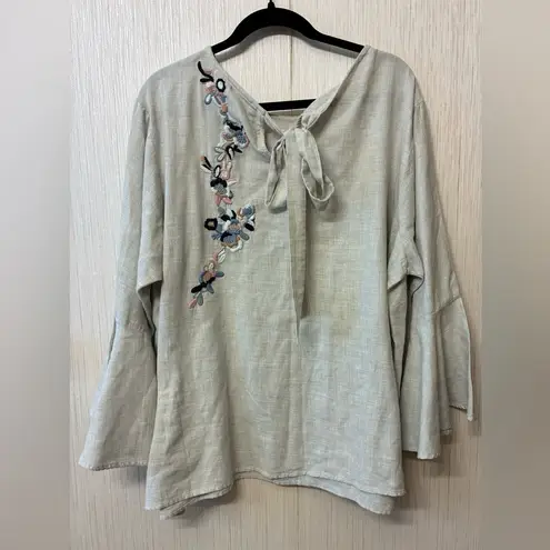 Chelsea & Theodore Size 2X Embroidered Bell Sleeve Top Linen Blend Boho Tunic Gray - $30 - From Llanely